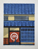 Titled Noren, this limited edition woodblock print by Japanese artist Kozo Onishi captures the quiet elegance of traditional architecture. A noren (暖簾) is a traditional fabric curtain hung at the entrance of shops and teahouses in Japan—serving both as a sign of welcome and as a symbol of the establishment’s identity. Here, Onishi depicts a bold red noren against a façade of indigo roof tiles and wooden lattice, creating a powerful interplay of color, texture, and geometry.