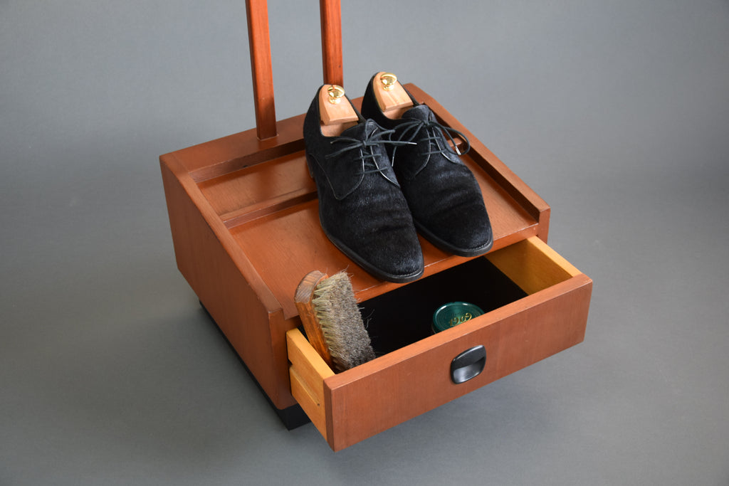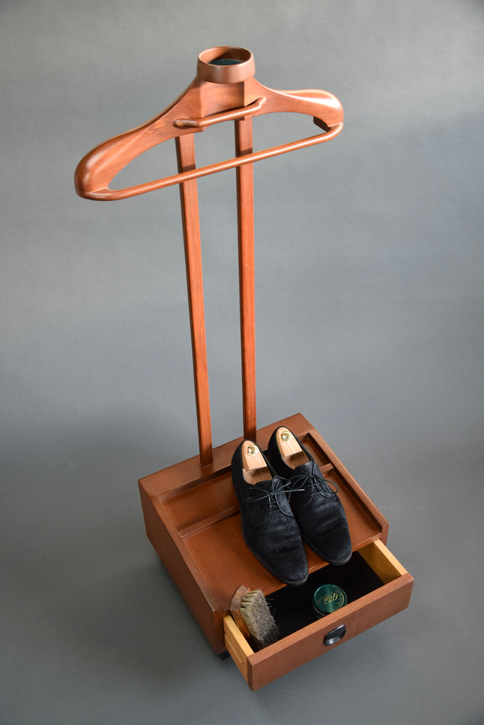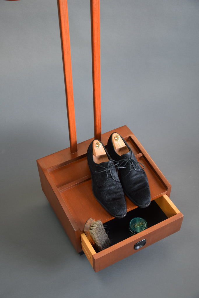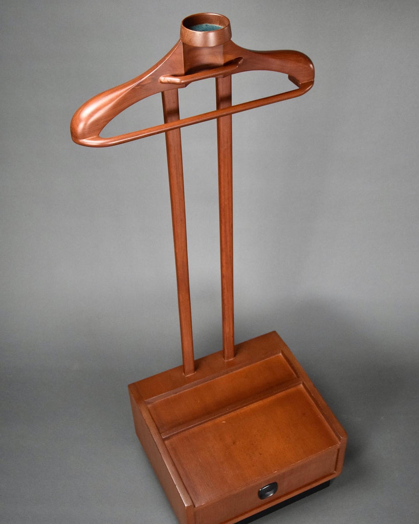 Vintage ObjectsClassy and elegant Scandinavian 1960's dressboy in great condition. The dressboy features a so-called "Svuota Tasche", a specific place to empty your pockets of coins, keys and you can even put your wristwatch in it. The valet has dedicated space for your trousers, jacket, necktie, shoes and comes with a compartment to keep your shoe polish and brushes handy.