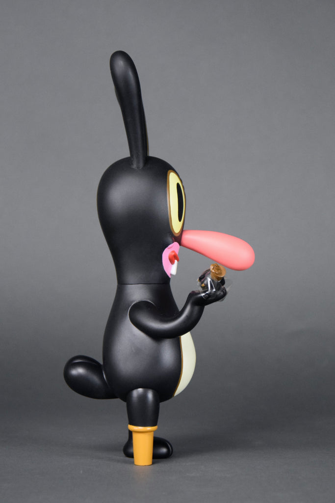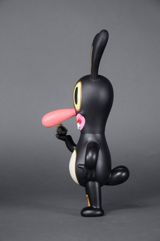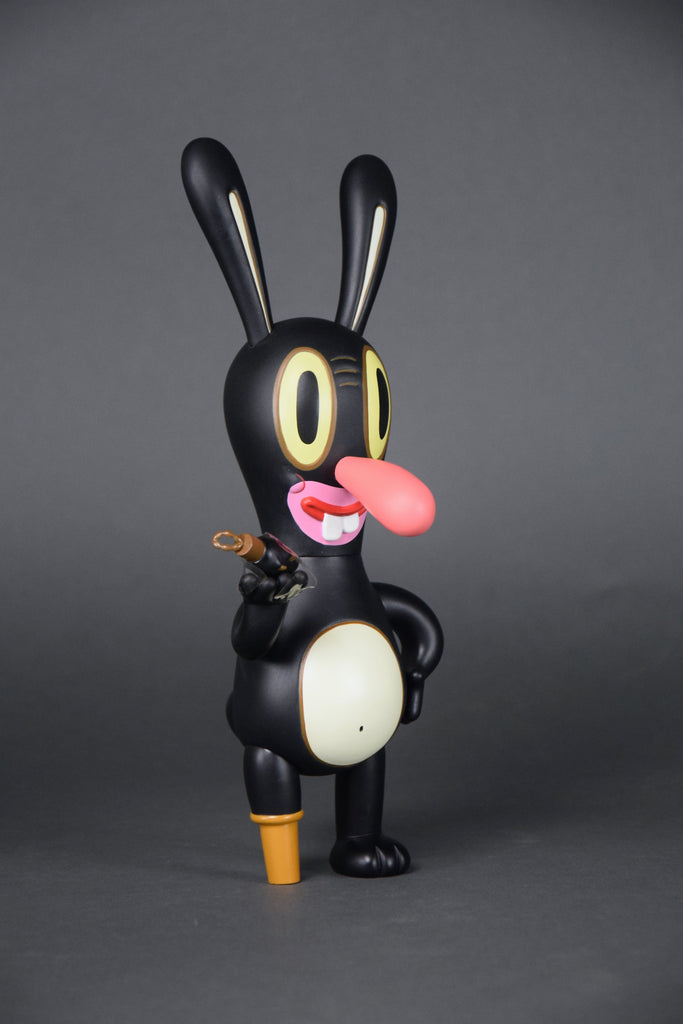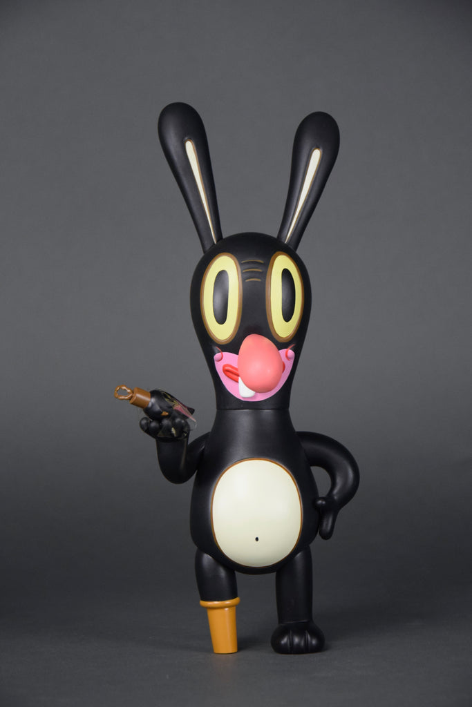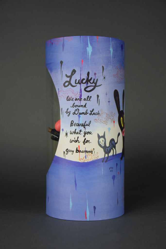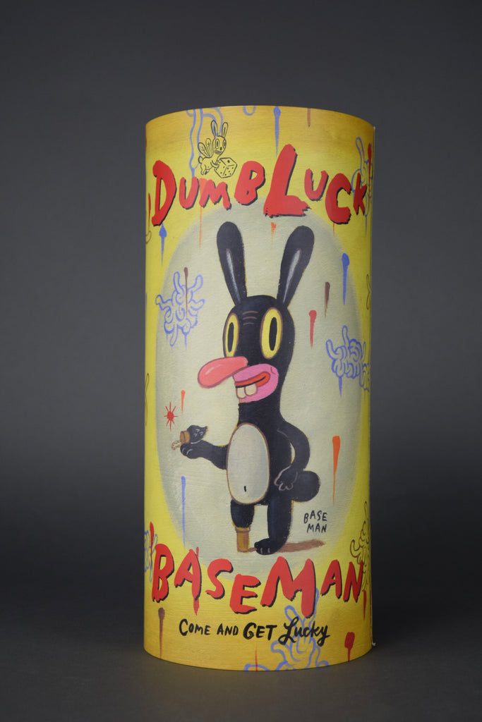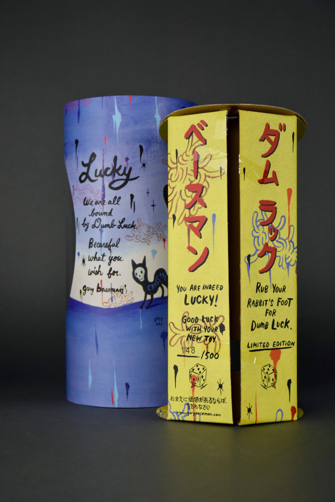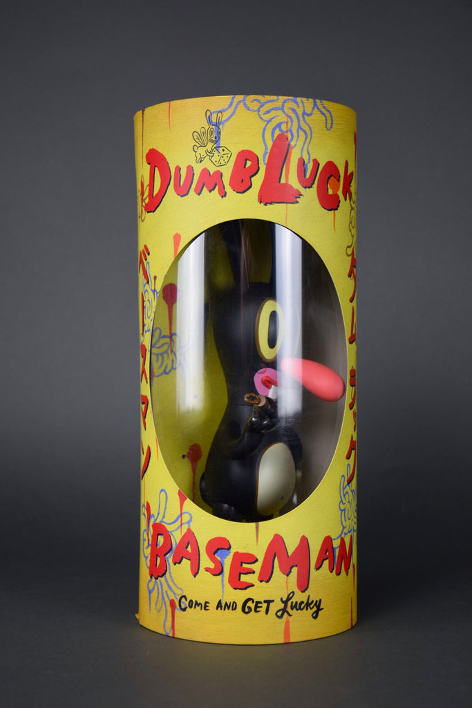 Gary BasemanFrom renowned illustrator, multiple Emmy award winner and general uber-artist Gary Baseman comes DUMB LUCK Japan Edition, based on his enigmatic painting of luck and loss. This extremely limited edition, 148/500, 27 cm - 10.629" vinyl art toy produced by Critterbox in 2003 / 2004, comes with a rotating-cylinder box ingeniously designed to provide surprising glimpses of original art by BASEMAN. DUMB LUCK comes complete with his own lucky rabbit's foot.