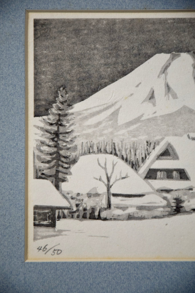 As number 46 of only 50 prints ever created, it holds both rarity and artistic significance. Immerse yourself in the essence of Japan's captivating winter scene, and elevate your space with this treasured gem – a true collector's delight.