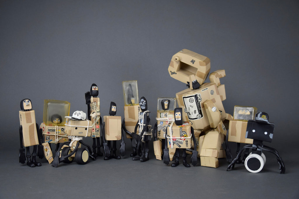 Michael LauUnique set of Limited Edition 2003 Art Toys by Michael Lau in collaboration with Maharishi and Nike.. This set includes all the S.F.C.C. figures : G.E.O.R.G.E., P.E.T.E.R., T.O.M., J.A.M.E.S., S.T.E.P.H.E.N., R.I.C.H.A.R.D., D.A.V.I.D., M.A.R.Y. and W.H.O.. The two versions, natural and black of the S.F.R.B.'S. The S.F.C.C. sci-ficrazychildren book and last but not least the extremely rare S.F.C.C. C21, the Kriegsmachine. When, in 2003, you bought any of the figures, a secret part would come with it. If you had all of the S.F.C.C.'s and, you were lucky, you had all the secret parts to assemble C21, the Kriegsmachine.
